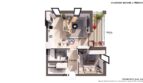 Byt s označením B2C o podlahové ploše 65 m2 a terase o velikosti 11,42 m2 se nachází v 2NP 3 patrového bytového domu. Celkem je v bytovém domě pouze 8 bytů.